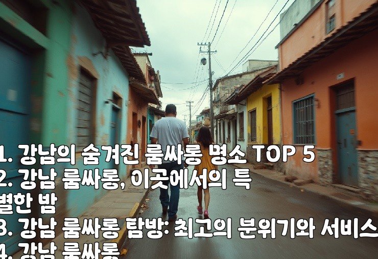 강남의 숨겨진 룸싸롱 명소는 단순한 유흥의 공간이 아닌, 특별한 경험을 제공하는 장소로 알려져 있습니다. 다양한 테마와 분위기, 그리고 수준 높은 서비스를 갖춘 룸싸롱들은 강남의 밤문화를 더욱 풍부하게 만들어 줍니다